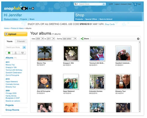 I led the redesign of the Snapfish Photo & Video organizer product that enabled customers to upload, view, organize, edit, search, tag and share photos and videos with the primary goal of providing a faster, easier and more robust viewing experience. Because this product was the core of the overall online Snapfish experience, I also led the creation of the UX Style Guide.